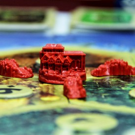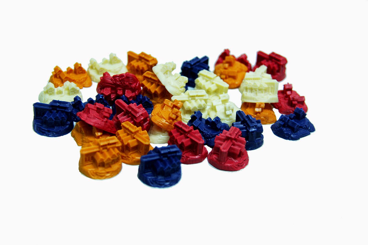 Игровые фишки четырёх цветов (16 городов, 20 поселений, 60 дорог)