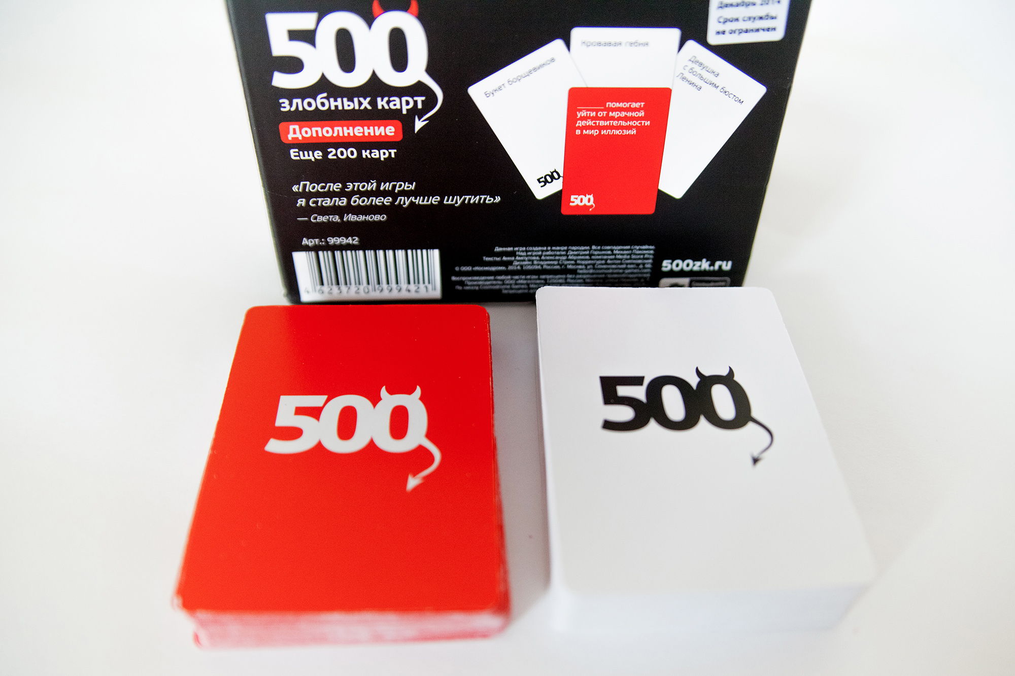 Вы можете купить товар «500 Злобных карт. Дополнение. Еще 200 карт» в Ульяновске по цене 700 рублей в интернет-магазине Shopomir. 500 Злобных карт. Дополнение. Еще 200 карт: характеристики, отзывы покупателей, фотографии. Широкий выбор в каталоге "Игры для компаний". Самовывоз, доставка в Ульяновске и по России.