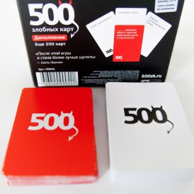 К большой радости любителей игры «500 злобных карт» производитель выпустил «Дополнение». Еще 200 карточек юмористических ответов и абсурдных вопросов. Новые злобные и жестокие фразы порадуют ваших друзей и удивят знакомых. Дополнение так же предназначено только для людей старше 18 лет и желательно обладающих хоть капелькой чувства юмора.