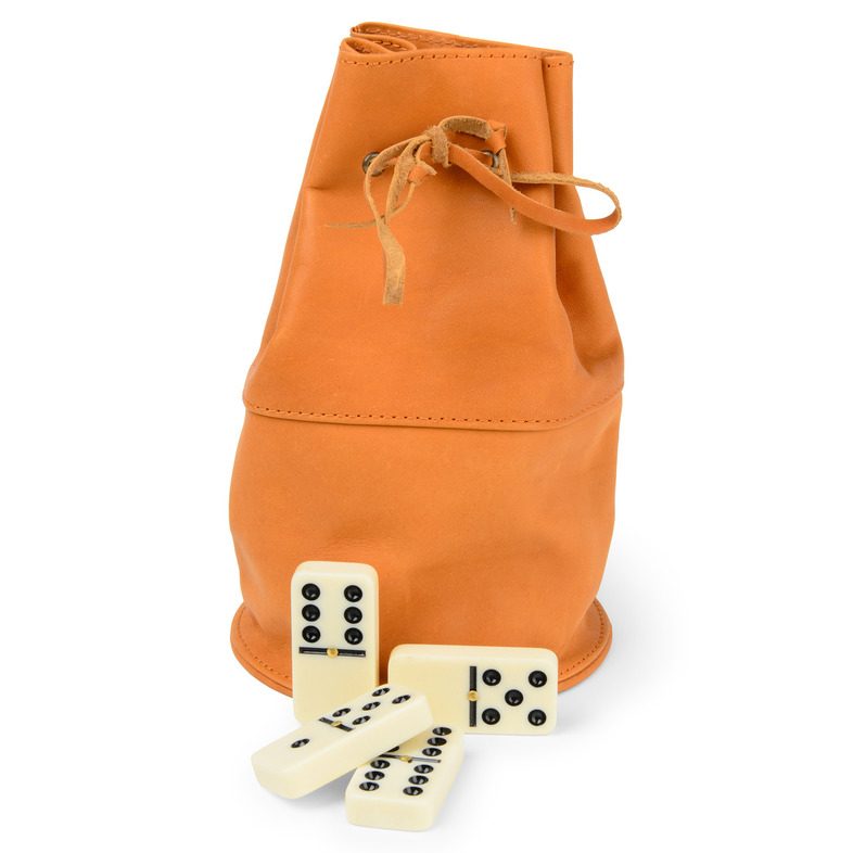 Домино в рыжем кожаном мешочке (6 точек)