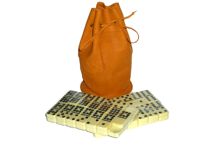 Домино в рыжем кожаном мешочке (9 точек)