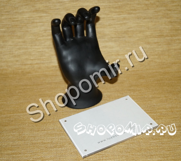 Рука, крепко удерживающая фоторамку, выполнена из черного прорезиненного пластика. Сама рамка для фотографии - из акрила.