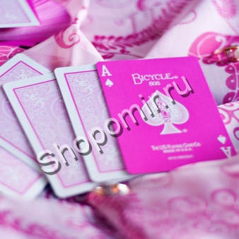 Дизайн серии Bicycle Rider Back pink принадлежит дизайнерам из USPCC. Интересный и малоизвестный факт, что все карты имеют белую основу, на которую впоследствии наносится розовый слой краски. Карты идеально подходят как для игры в покер, так и для фокусов. |