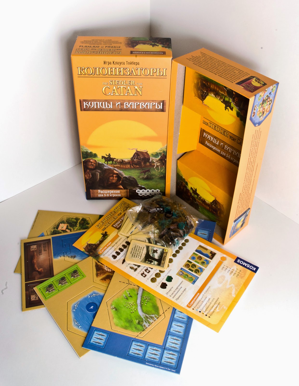 Торговые союзы и упорная конкуренция, объединение сил для отражения варварских набегов и торжественная встреча Нового года в кругу друзей, расширение культурных связей с обитателями пустынь и увеличение лова рыбы в территориальных водах знаменитого острова — всё эти приключения стали доступны для пяти и шести игроков. Остров Катан ждёт новых поселенцев!