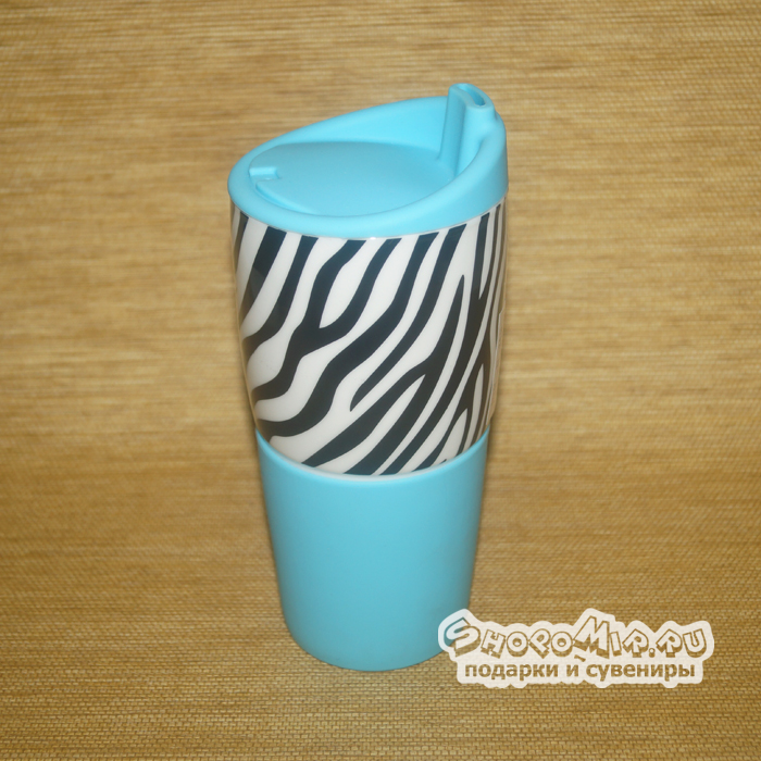 Интересный черно-белый принт под зебру придает ей трогательный и очень милый вид. Вставка из голубого силикона защищает руки от излишне горячей керамической поверхности, а оригинальная крышка надежно убережет напиток от проливания.