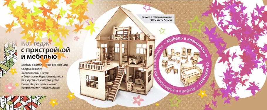 Также можно приобрести кукольный домик из фанеры, без пристройки.
