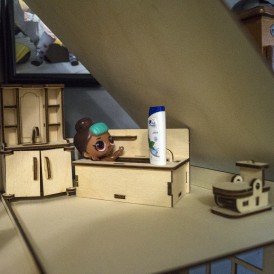 При сборке детали соединяются между собой легко прочно, как конструктор в пазы. После сборки дом можно покрасить акриловыми и гуашевыми красками или покрыть лаком и даже поклеить обои, прекрасное "поле" для творчества.