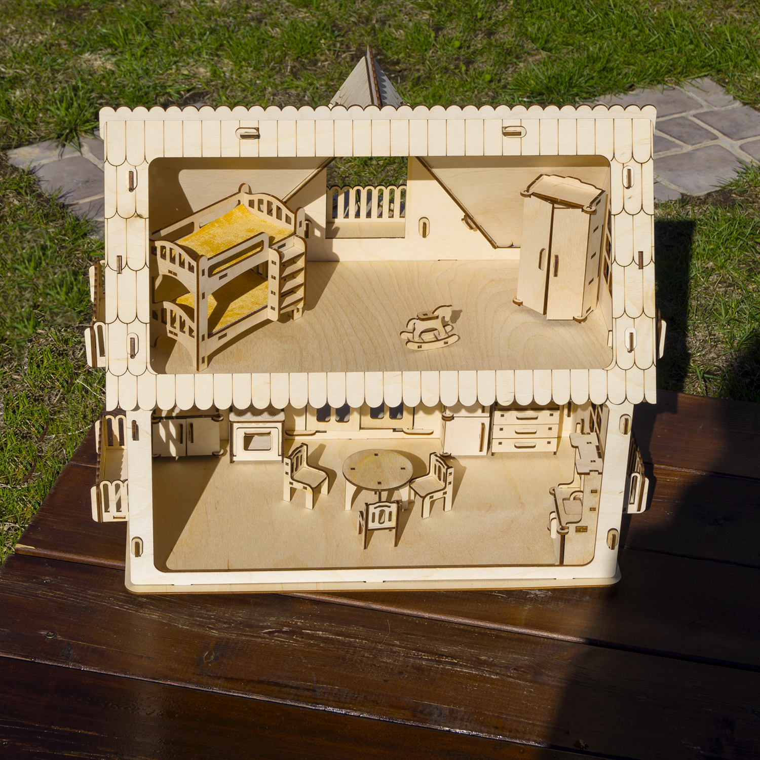Это не просто конструктор, но и развивающая и увлекательная игрушка для детей. При сборке детали соединяются между собой, как конструктор в пазы. После сборки дом можно покрасить или покрыть лаком и даже поклеить обои, прекрасное "поле" для творчества. Состоит из абсолютно безопасных материалов для детей. Детали вырезаны лазером, ровные края.
