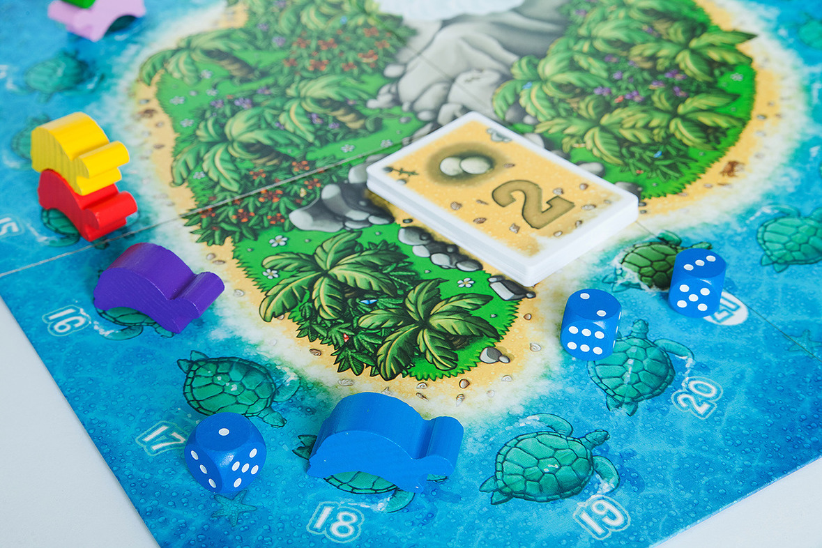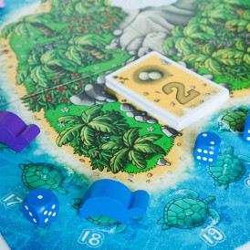 Условия предельно просты: кидайте кубик и передвигайте свою черепашку на нужное количество клеток вперед. Но, конечно, это не все условия игры, иначе она была бы довольно примитивной и ничем не отличающейся от массы других. Здесь в отличие от подобных игр, можно кидать не один кубик, а два или три кубика одновременно, правда если выпавшее количество очков превысит 7, то игроку придется вернуться в начало круга. Также можно прокатиться на спине соперника, если ваш черепашонок «устал», а за каждое действие здесь начисляется определенное количество очков. Они указаны на карточках, которые игрок получает после хода.