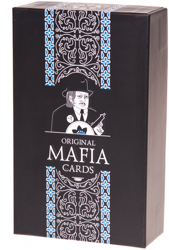 Только взгляните на эту шикарную коробку, выполненную из прочного и долговечного картона. Рисовка сразу переносит в далекие времена, когда мафиозные семьи правили улицами и творили все, что им хотелось. Это та самая, классическая Мафия, со всеми возможными дополнениями и персонажами, выполненная в спокойном стиле. Играя в нее, вы не будете отвлекаться на различные «веселые картинки» - можете на полную катушку проявить свою хитрость, блеф и психологические навыки.