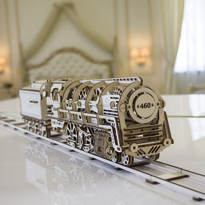 Деревянный конструктор локомотив с вагоном – самая подробно проработанная модель среди конструкторов UGEARS, со своей механикой. Вы сможете увидеть работу двигателя в полной мере. Элементы мотора, работу поршней видно через открытую крышку локомотива.