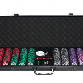 Покерный набор премиум-класса содержит фишки с номиналом от 5 до 1000.Номиналы оптимально подобраны, чтобы в процессе игры были задействованы все фишки, но при этом вы не испытывали дефицита даже с компанией в 12 человек.