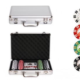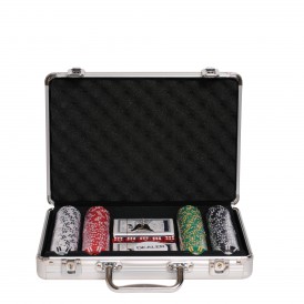 Набор для игры в покер включает в себя качественные карты по 54 листа, фишки разных номиналов, фишку дилера и 5 игральных костей.Стальной кейс с ключами, в который сложен весь набор для покера, позволит Вам всегда брать с собой свою любимую игру. Стоит отметить, что весит набор Royal Flush на 200 фишек совсем немного, что позволяет без труда переносить его в руках.