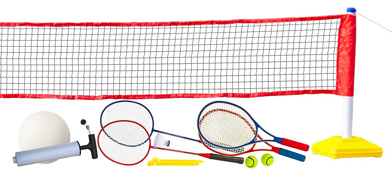 Набор для волейбола, тенниса, бадминтона с регулируемой по высоте сеткой «Prazer 3 в 1» (полный набо