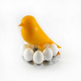 Сидя на миниатюрной подставке, ярко-желтая птица величественно взирает на мир. Ведь вокруг нее расположена самая большая ценность, в которой зарождается жизнь.