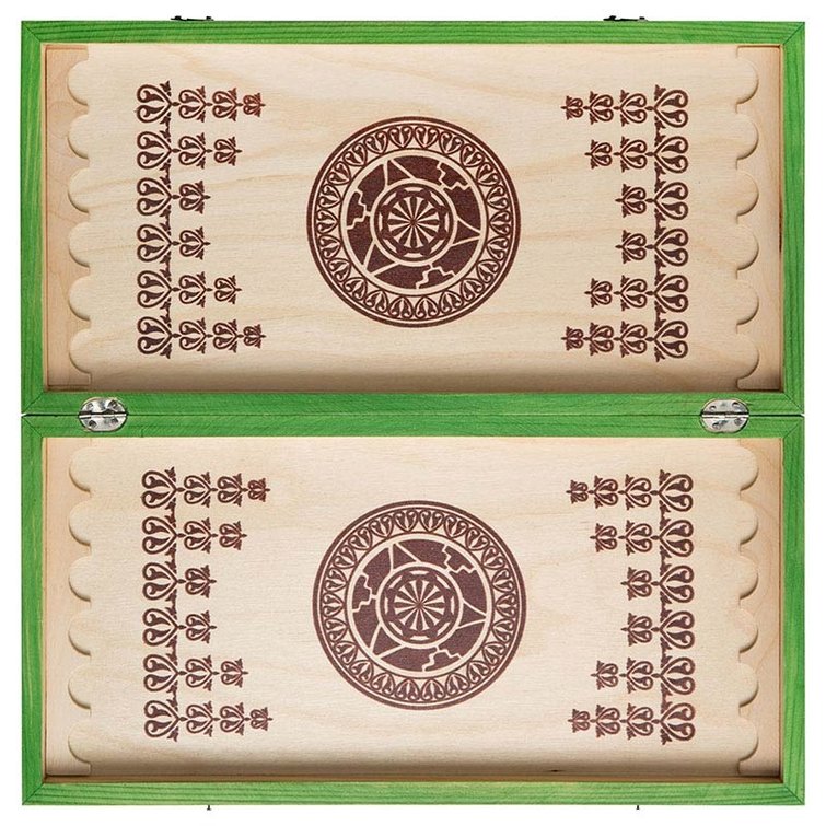 Внешняя сторона доски покрашена в зеленый цвет, а всего в этой серии несколько расцветок, включая желтую и розовую. Благодаря такому подходу вы всегда сможете выбрать наиболее привлекательный вариант для себя. Изнутри же, само игровое поле везде одинаковое и сохранило цвет и фактуру древесины. Здесь нанесен приятный рисунок, который радует глаз во время партий, но и не отвлекает внимание.
