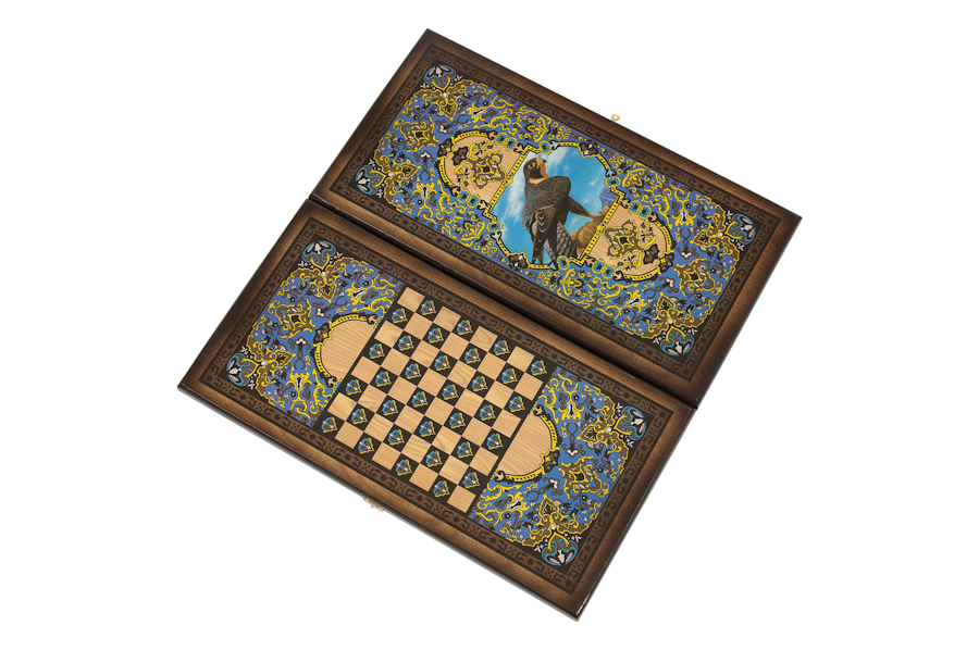 Этот набор для игры в нарды с роскошной росписью на внешней и внутренней