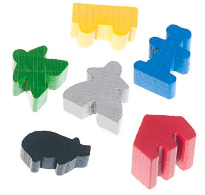 20 жетонов товаров (9 вина, 6 зерна, 5 ткани)