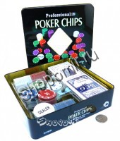 Покерный набор в металлической коробке 100 фишек