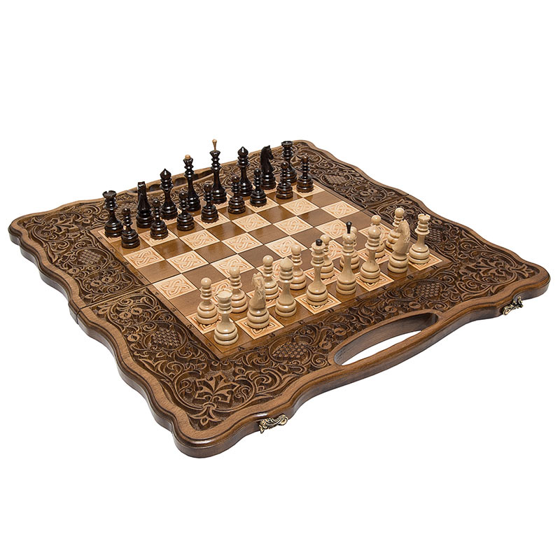 Шахматы + нарды резные "Вардени" 60 с ручкой