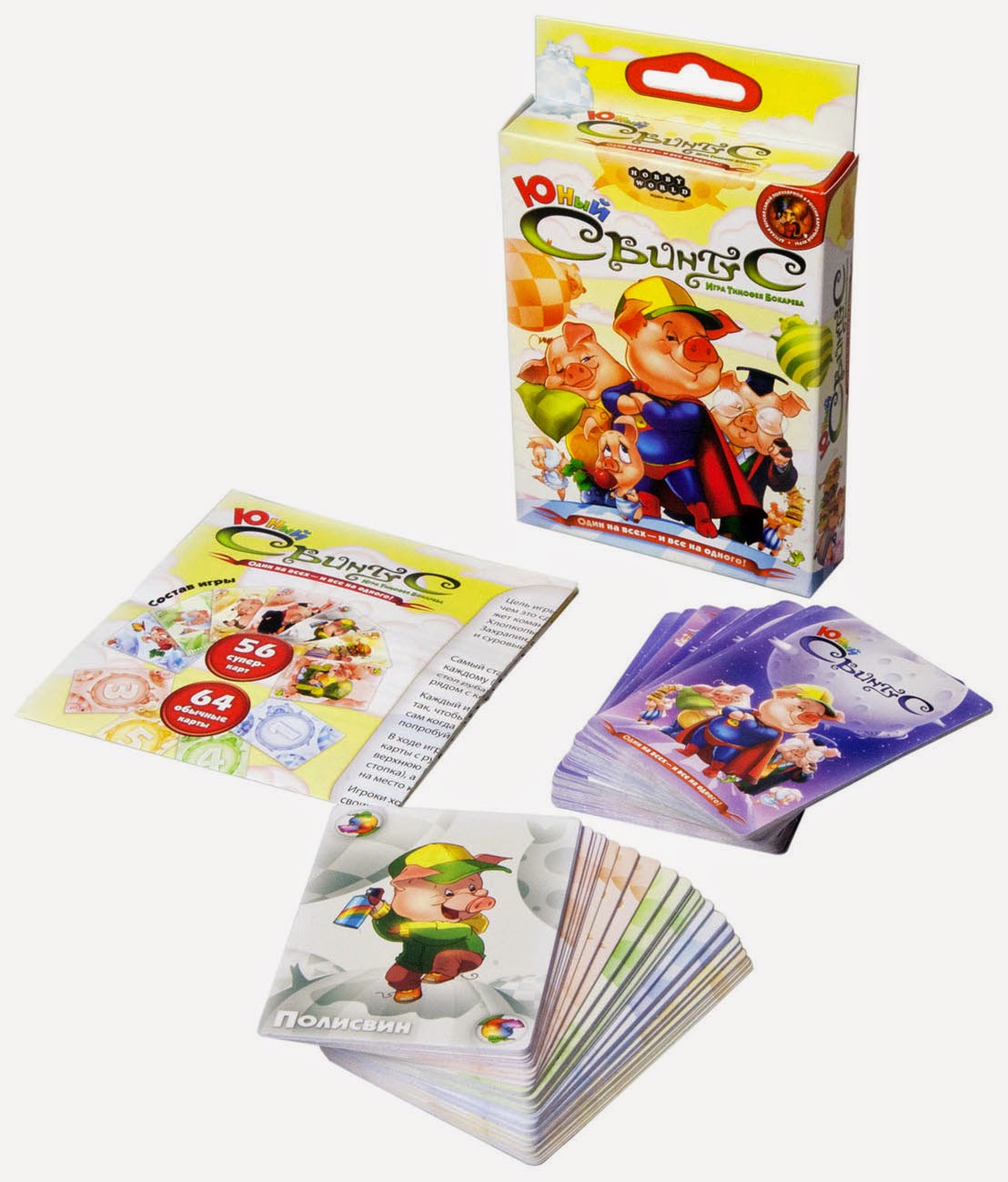 Новая версия всероссийского карточного бестселлера — теперь и для самых маленьких игроков! Цель игры предельно проста — избавиться от всех своих карт. Справиться с этой задачей вам поможет команда суперсвинтусов: молниеносный Хлопкопыт, загребущий Хапеж, вертлявая Перехрюшка, невозмутимый Захрапин, цветопомрачительный Полисвин, таинственный Тихохрюн и суровый Указявка! «Юный Свинтус» — это не только упрощённые правила и симпатичные иллюстрации, созданные специально для детского издания игры, но и совершенно новая специальная карта, которая станет приятным сюрпризом даже для заядлых любителей «Свинтуса».