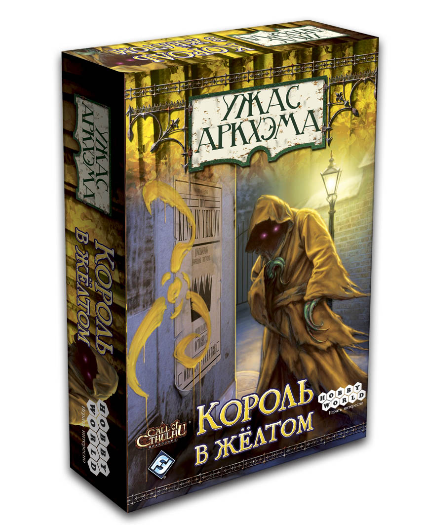 «Король в жёлтом» — дополнение к настольной игре «Ужас Аркхэма». Оно позволит вам пережить новые приключения в Аркхэме и Иных мирах, вы столкнётесь с безумцами и невиданными ранее препятствиями. Также будьте готовы к встрече с новым могущественным Вестником — Королём в жёлтом.